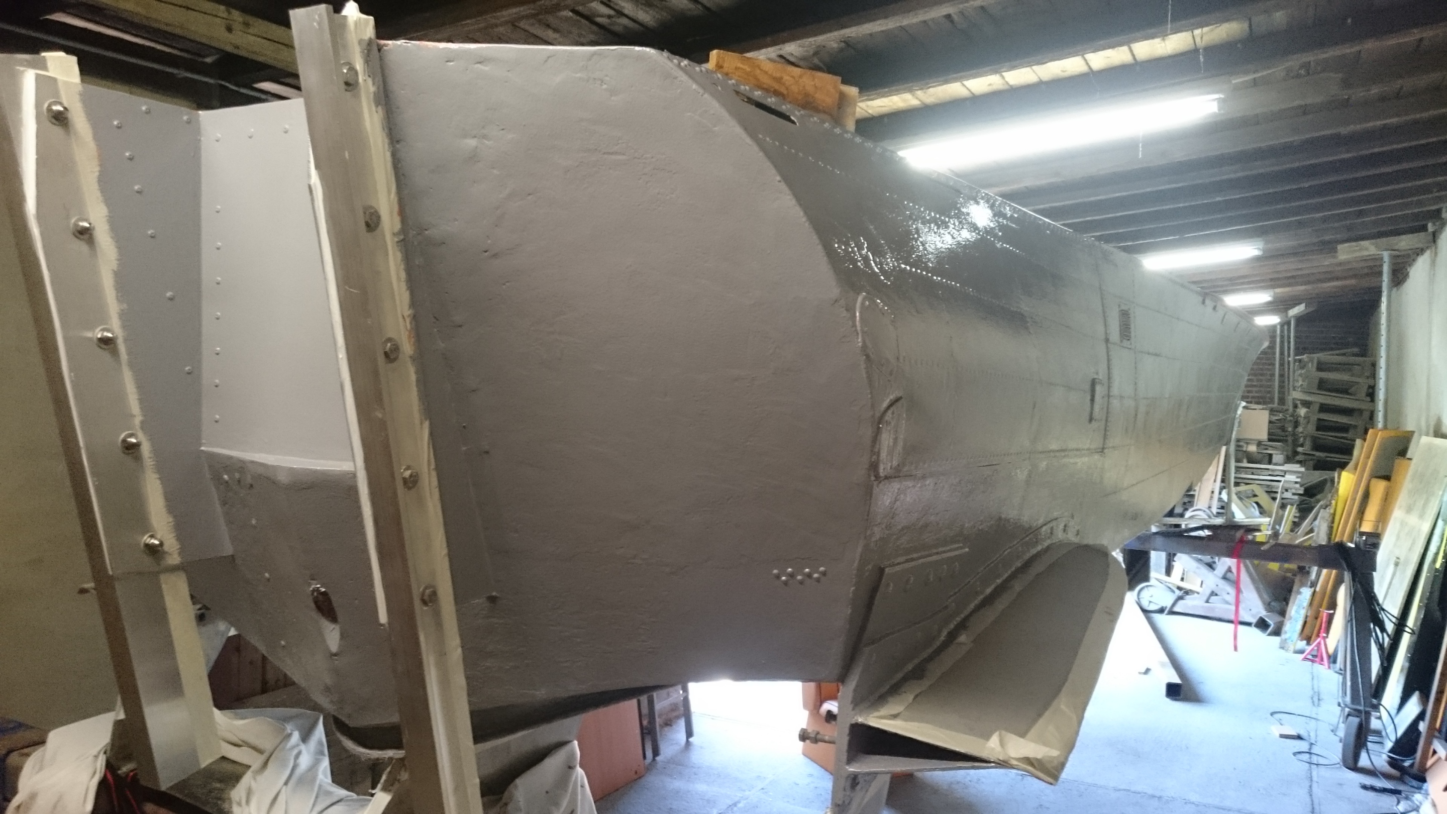 A couple options is to mount a out board bracket to the transom one possible advantage would be that one could put a engine jack on the bracket to rise and lower the outboard to maximize the prop draft being the key to optimal reduction of drag witch in my opinion is what this boat is all about the new outboard motors are very light for there hp what I'm not sure about is hanging weight that far back of the boat an unknown for me ( any input here would be very appreciated ) the other option that comes to mind is use of a new lighter z drive ( inboard/ outboard ) and try fitting one of the new light weight rotex drive currently being used in personal water craft ( once again looking for any input here ) thanks for reading through this long post I love this boat it is like no other boat I have had the opportunity to ride in I have hundreds of hrs at her helm one trip alone took me from Seattle Washington to Homer Alaska and back one day on the upper Columbia river I traveled over 1000 miles in one day @ 70 mph I've hit floating debree slid up on sand bar's and once even took Jack Cousteau for a short ride in trade for diesel and dinner ( I ate alone in the crew galley ) but it was tasty and they filled up my diesel tanks and off I went