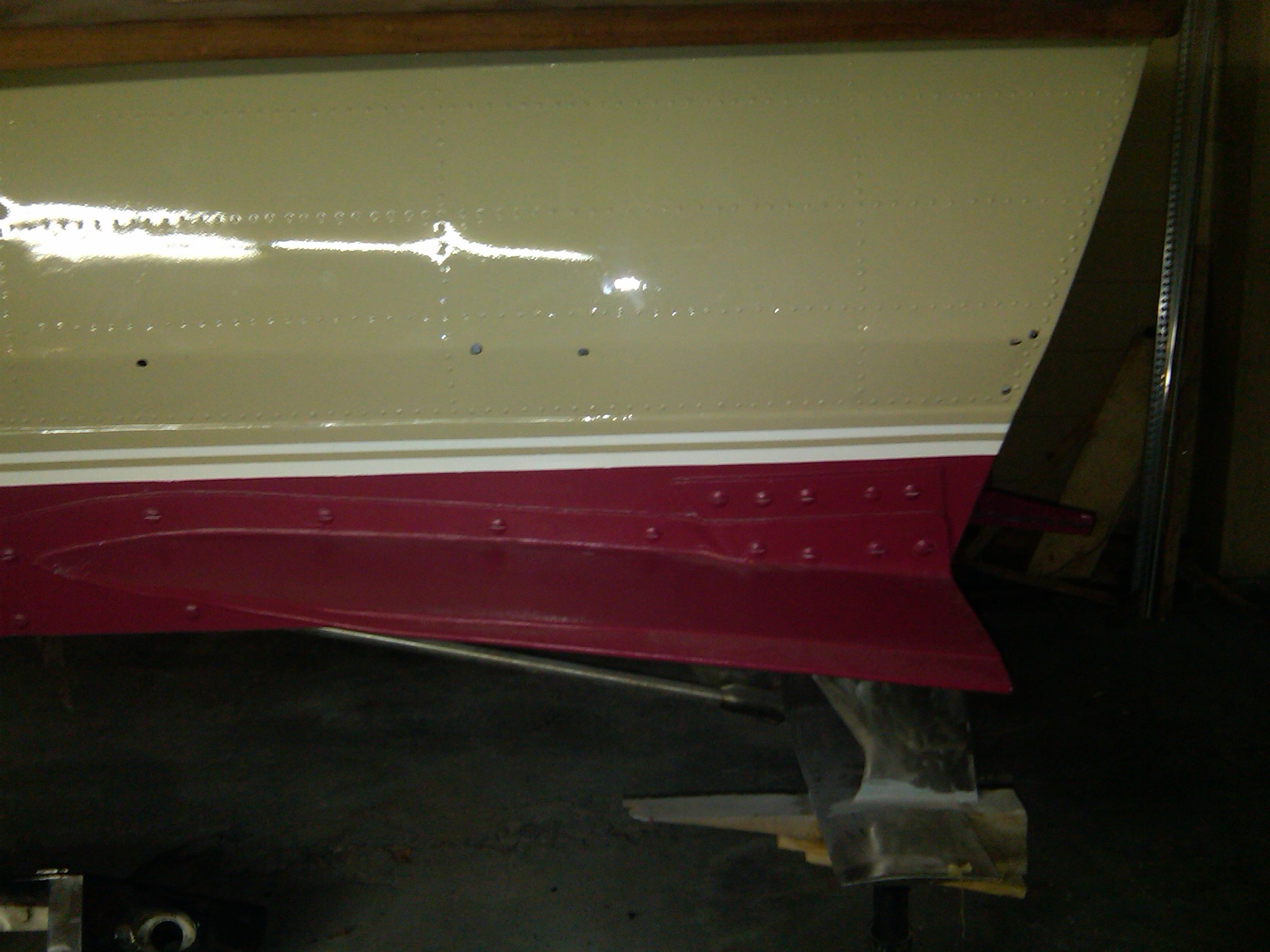 On the kay the deck of the Volga was smashed several times and altough the workshop was able to mend most impacts but they did not want to stress the hull too much fearing that rivvets will tear. So it was decided to fill the rest with mastic and then paint it.
